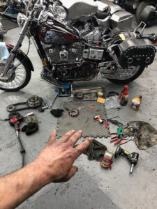 Comme bon employé, Junior a commencé à travailler en bas de l’échelle en apprenant à montrer les échelons les uns après les autres. Aujourd’hui, Junior fête ses 40 ans à l’atelier. Maintenant à la tête de CMR, il est considéré comme un des très bons mécaniciens au Canada. Junior a fait ses preuves durant ces années, que ce soit comme machiniste, pour la fabrication de moto custom, de pièces, la reconstruction de moteur ou simplement la calibration de moto sur leur Dyno Jet, il est un spécialiste dans tous les domaines que comprend une moto. Pour l’avenir, Junior aimerait bien ralentir un peu d’ici quelques années, et prendre plus de temps pour la famille, faire plus de voyages à moto et travailler à l’occasion sur quelques petits projets 2 roues pour ne jamais arrêter sa passion qui est la moto.